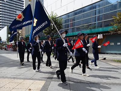 防火パレードを実施することにより、クラブ員の防火意識の高揚と市民に対する防火思想の普及を図られました。