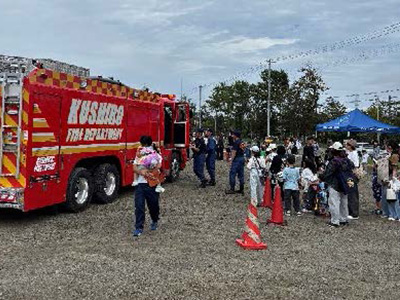 令和7年9月7日(日)釧路市消防訓練場で実施した本イベントは、(一財)日本防火・防災協会との共催で行われ、消防職員や消防団員の活動を市民に紹介するとともに、防火・防災啓発や自主防災組織員の活動機会の創出を目的としました。