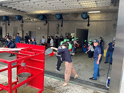 バケツリレーや煙体験、地震体験車、水消火器取扱いなど、いざという時に適切な行動をとれるよう訓練を実施しました。