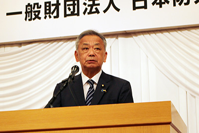 はじめに、(一財)日本防火・防災協会 会長 秋本 敏文より主催者挨拶をし、続いて、総務大臣挨拶を、高橋 克法 総務副大臣が代読されました。