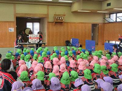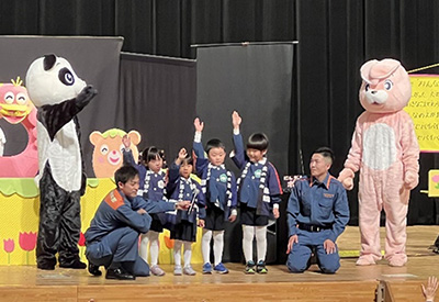 また、「劇鑑賞」では、テーマである防火安全に関する劇を、地元の短大生による「アンパンマンのやきいもまつり」と宇都宮市西消防署の職員による「消防戦隊ヒケシレンジャー」の二本立てで鑑賞し、いずれの劇も園児たちを夢中にさせ、消防に親しみを持つとともに、火遊びの怖さを学んでくれたようでした。
