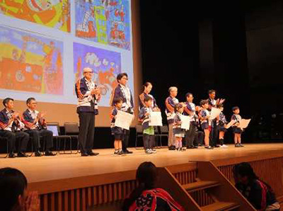 同センターの大ホールでは、人形劇を鑑賞し、盛り上がりました。フィナーレでは、クラブ員を代表して一関幼稚園の園児4名が「防火の誓い」を元気よく唱和し、今大会を締めくくりました。