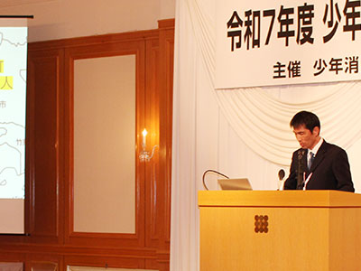 少年消防クラブ活性化推進会議 秋本 敏文委員長による開会の挨拶で始まり、続いて総務省消防庁地域防災室長 籏野敏行 氏、文部科学省男女共同参画共生社会学習・安全課安全教育推進室長 岩倉禎尚 氏よりご挨拶をいただき、その後少年消防クラブに関連する消防庁、文部科学省の令和8年度施策について説明を行っていただきました。