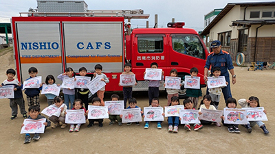 西尾市では秋季火災予防運動の一環として、市内15園・792名の幼年消防クラブ員を対象に、「みんなでかこう しょうぼうしゃ」と題したぬり絵会を(一財)日本防火・防災協会と共催で、令和7年10月14日(火)から令和7年12月12日(火)まで実施しました。